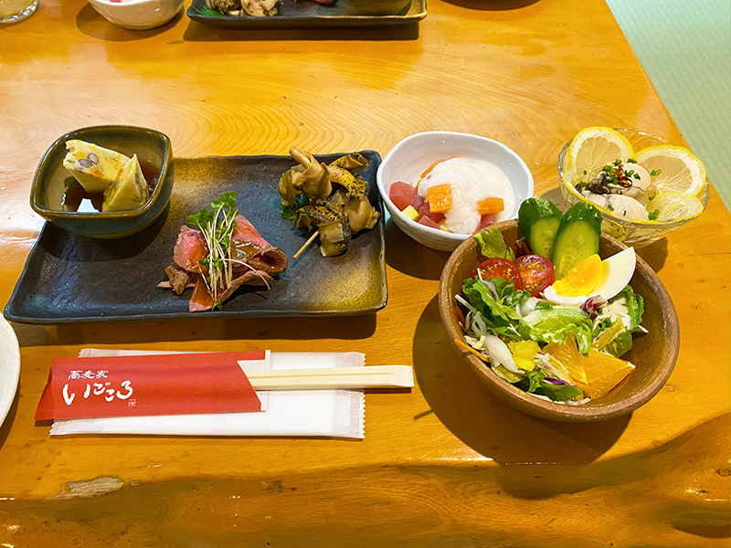 ・おつまみ料理3種盛り ・選べるサラダ(シャキシャキ大根・彩りシーザー他)
